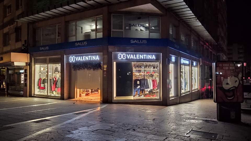 En la calle Palacio Valdés esquina con Posada Herrera de Oviedo, se ha instalado la conocida marca de moda Valentina. Y en Electricidad Sangar hemos sido los encargados de realizar la instalación eléctrica y la iluminación de la tienda. Iluminación realizada en su totalidad con tecnología Led de la Marca Leds Home. La iluminación general está realizada principalmente con el foco modelo Monaco de 40W en 3000ºK en color negro, situado sobre carril electrificado de la misma marca. Y los escaparates de con tira Led de 12W/m sobre perfileria de aluminio.
